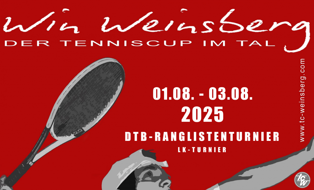 Angeführt vom A6-DTB-Ranglistenturnier der Herren wurde am vergangenen Wochenende zum 17. Mal das Win Weinsberg Tennisturnier durchgeführt. Neben den Ranglisten-Herren wurden auch LK-Turniere der Herren B und C, der Damen (erstmals) und der Herren 40 durchgeführt. Das ebenfalls geplante Herren 50-Doppelturnier kam nicht zustande. Bei den Damen lagen nur 4 Meldungen vor. Hier hoffen die Veranstalter auf zunehmendes Interesse in den nächsten Jahren.